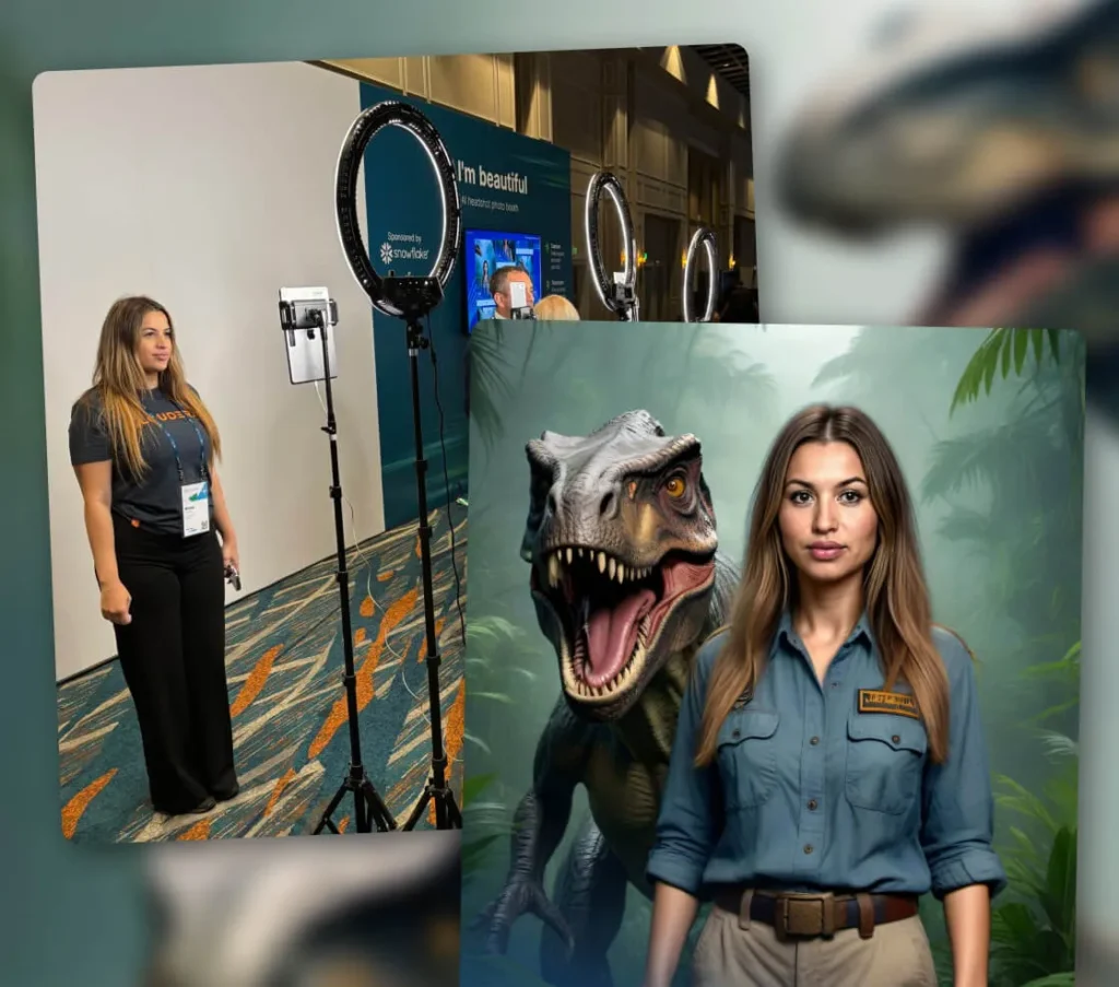 Absolutely. We offer customized photo templates, branded overlays, props, and backgrounds to match your event theme or corporate identity.