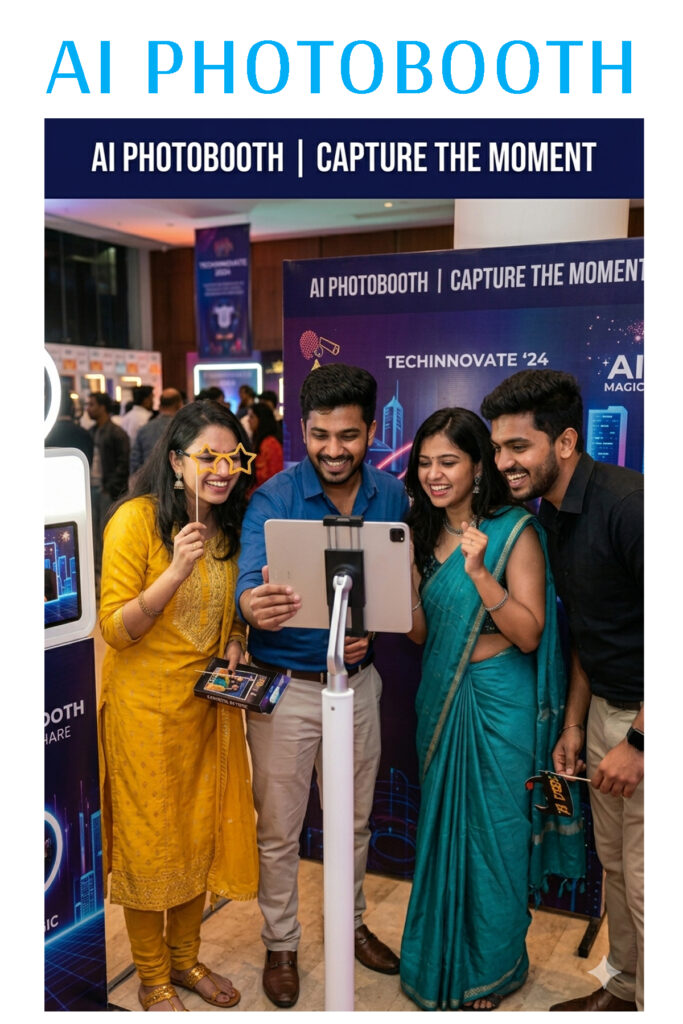 We provide photo booth and AI photography services for corporate events, weddings, birthday parties, exhibitions, brand activations, college festivals, and private celebrations.